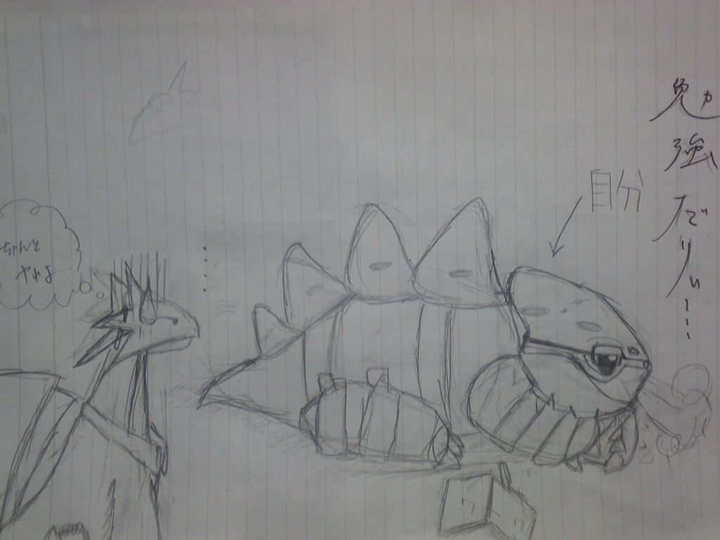 ちなみに、宿題やってる間にダルすぎて落書きなんかしてたのでそれ貼っといて今日は終わるんです、はい(待